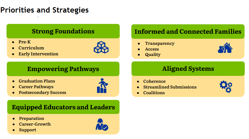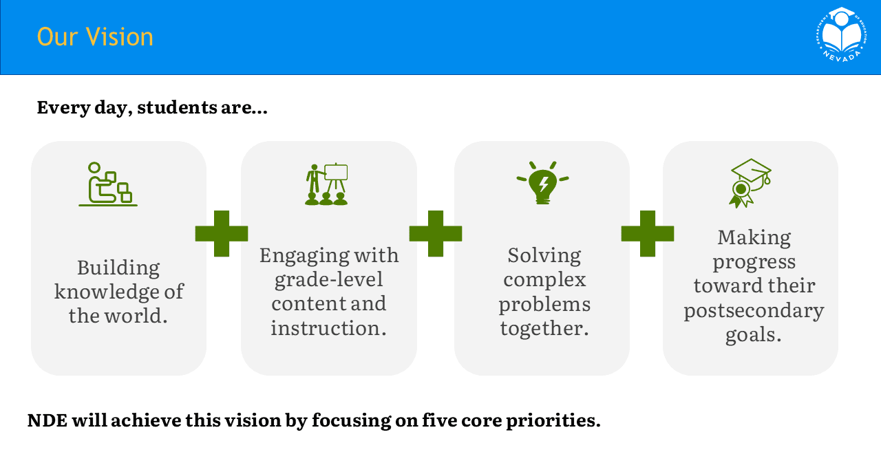 The Nevada Department of Education’s five new strategic priorities are informed by feedback provided during Superintendent of Public Instruction Dr. Victor Wakefield’s statewide listening tour.